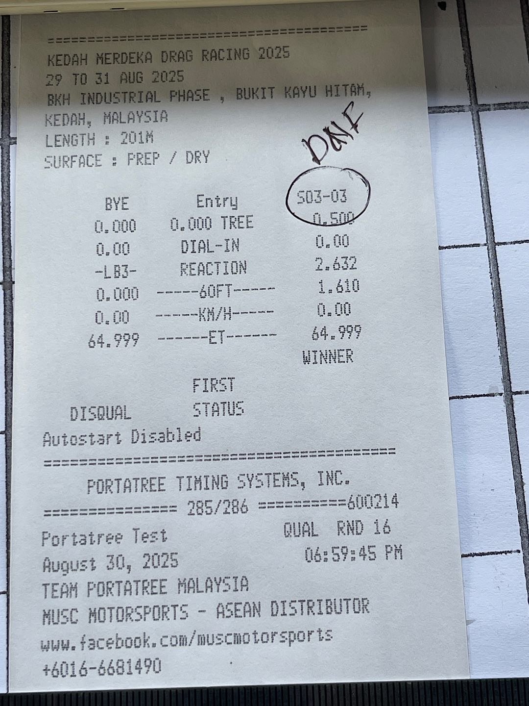 FS: False Start | DNF: Did Not Finish | DNS: Did Not Start