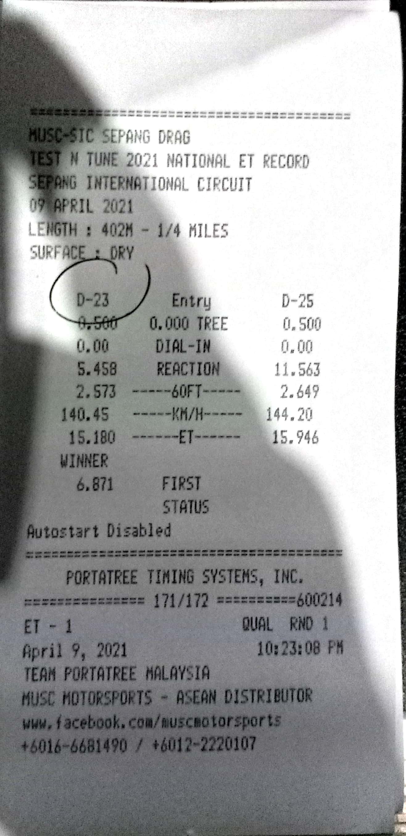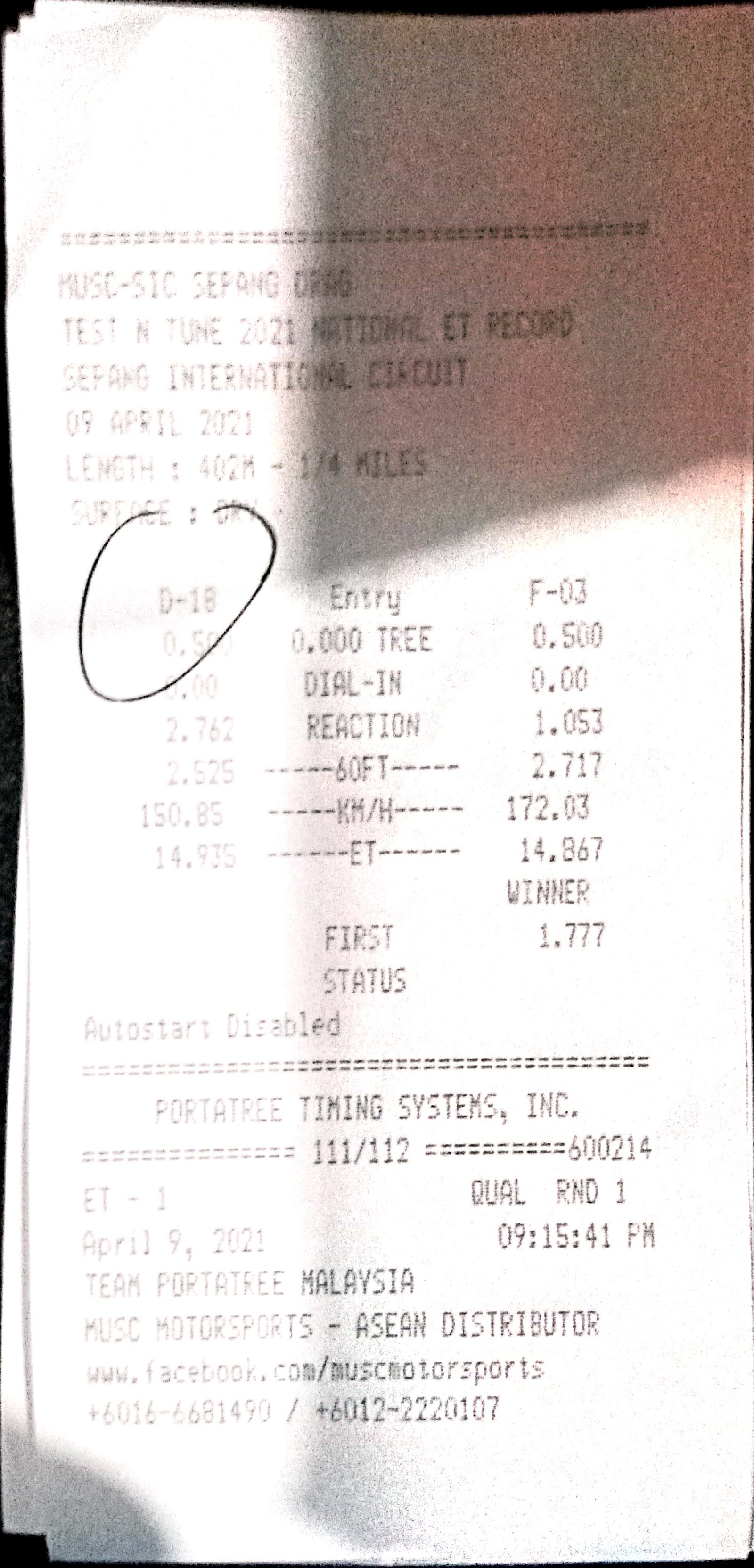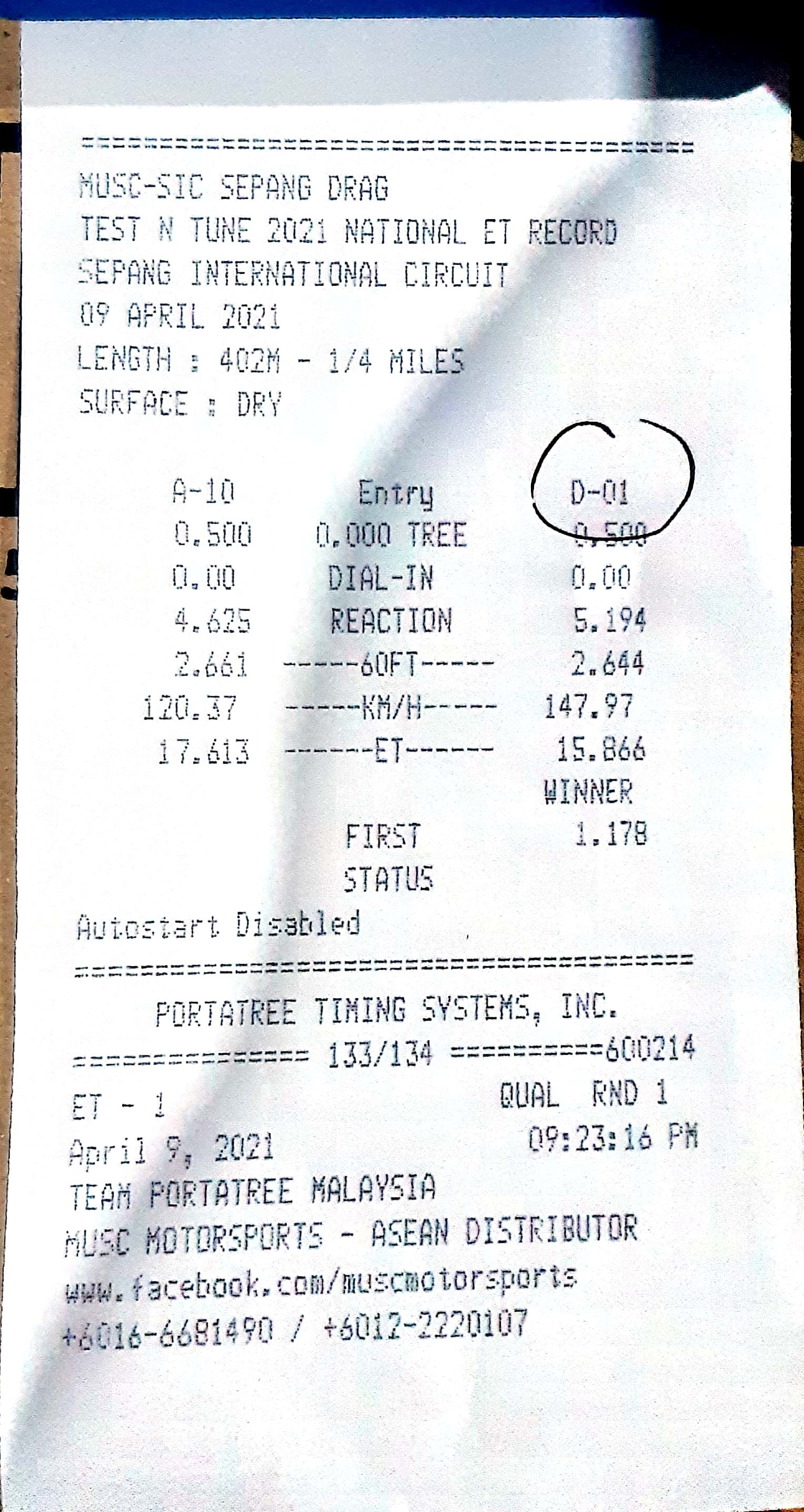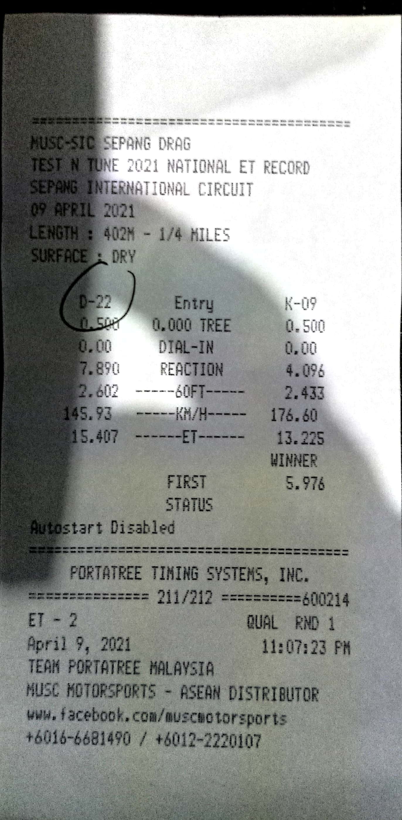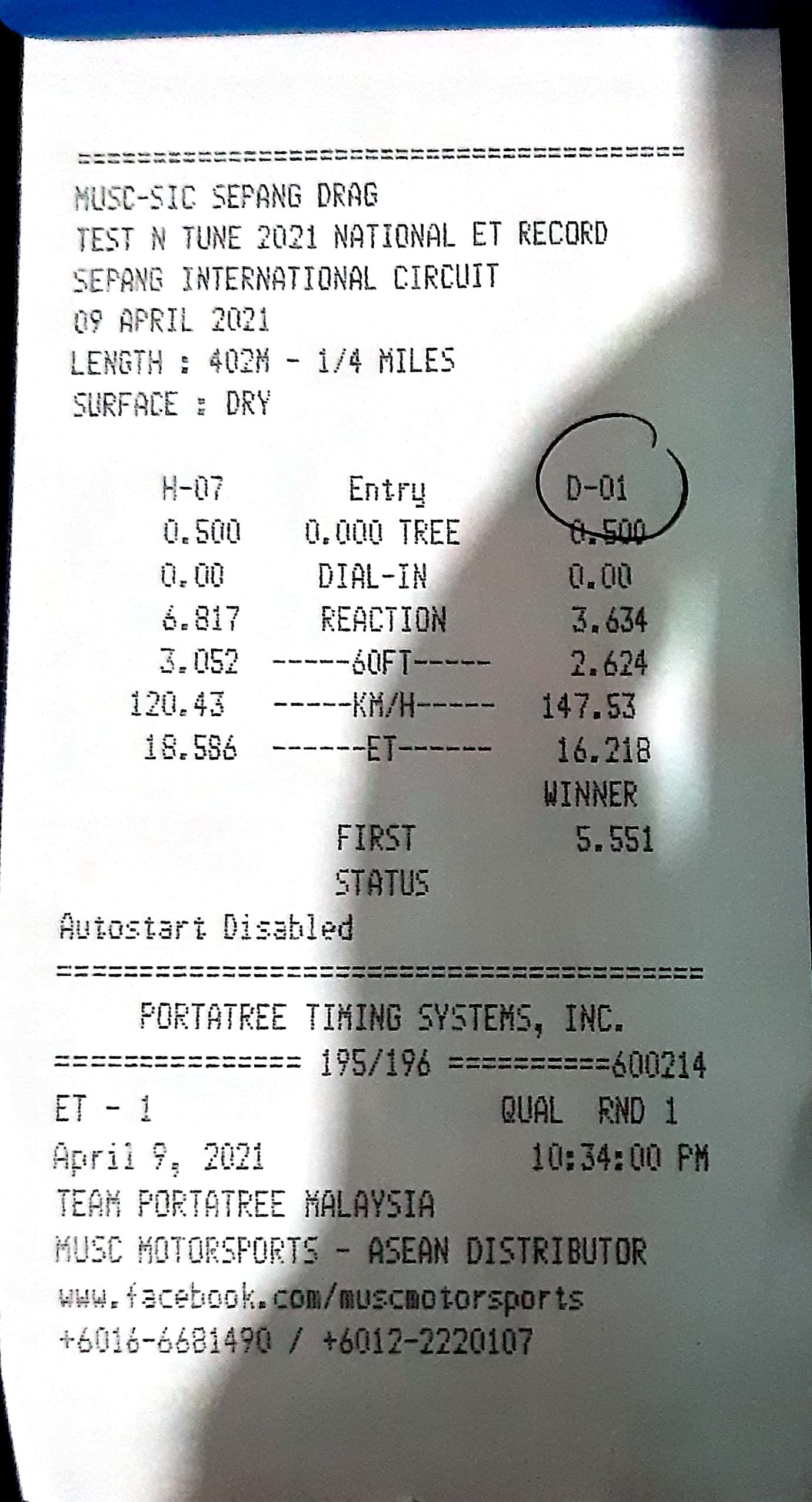 | 16 | D18 | Angah Dragstar | Cmat Along Garage Suzuka Racing Team |