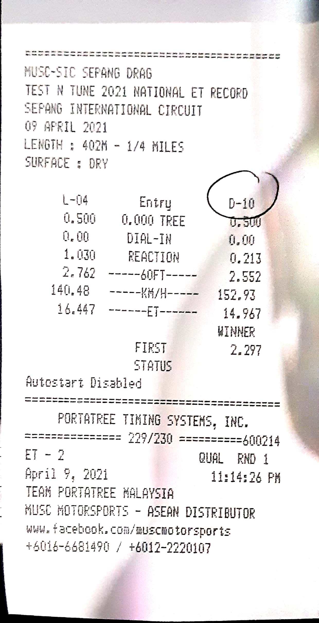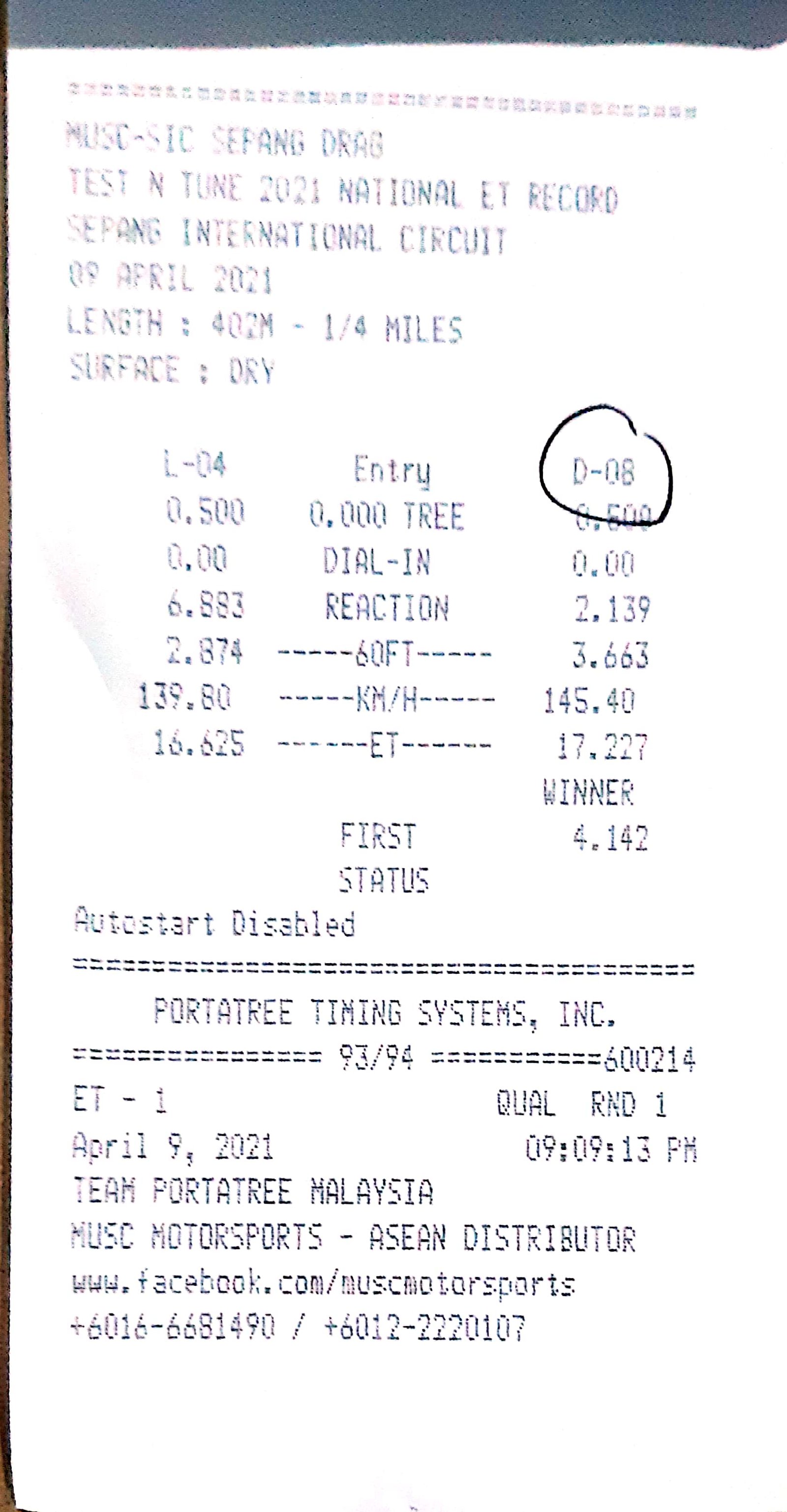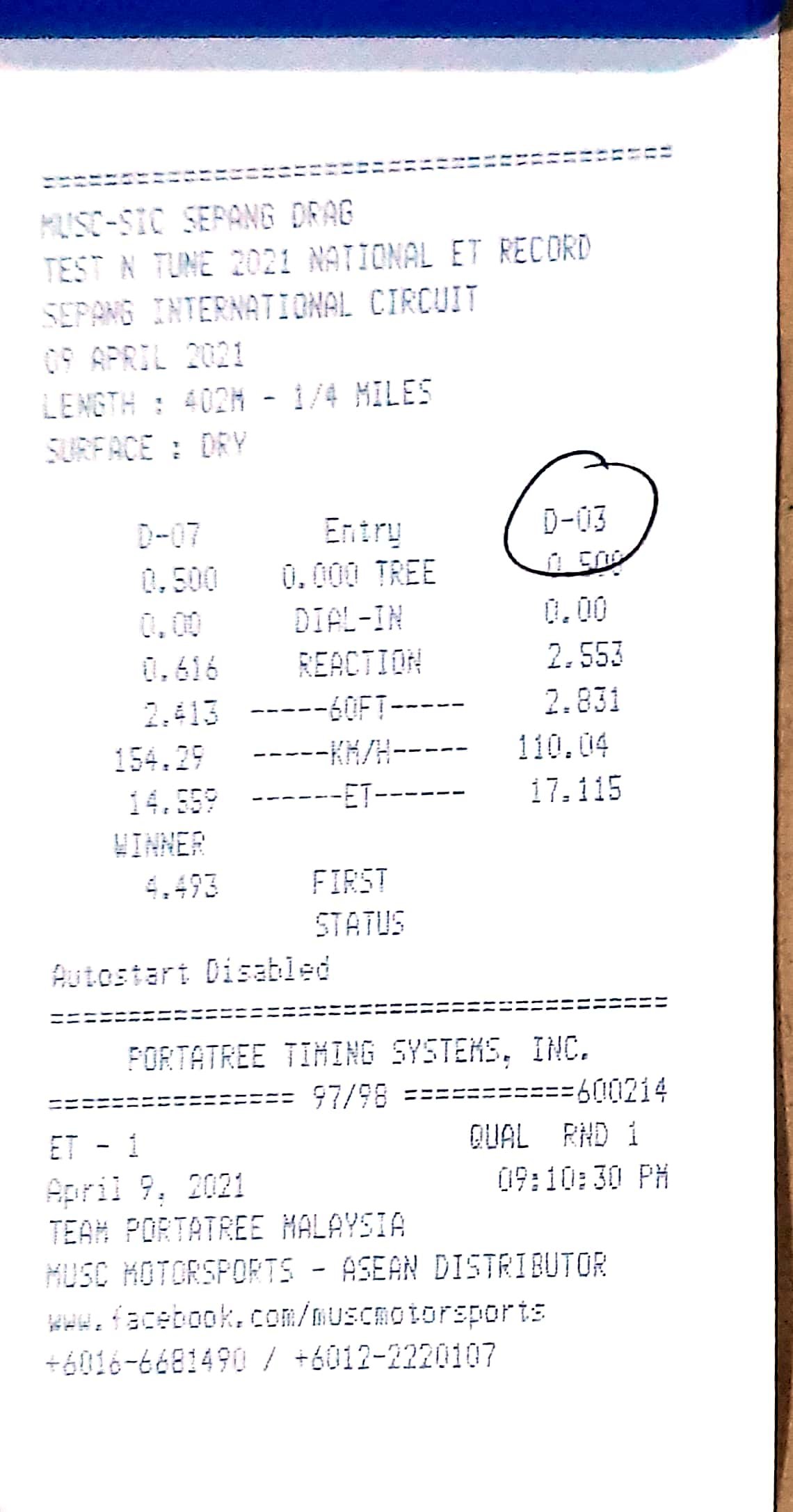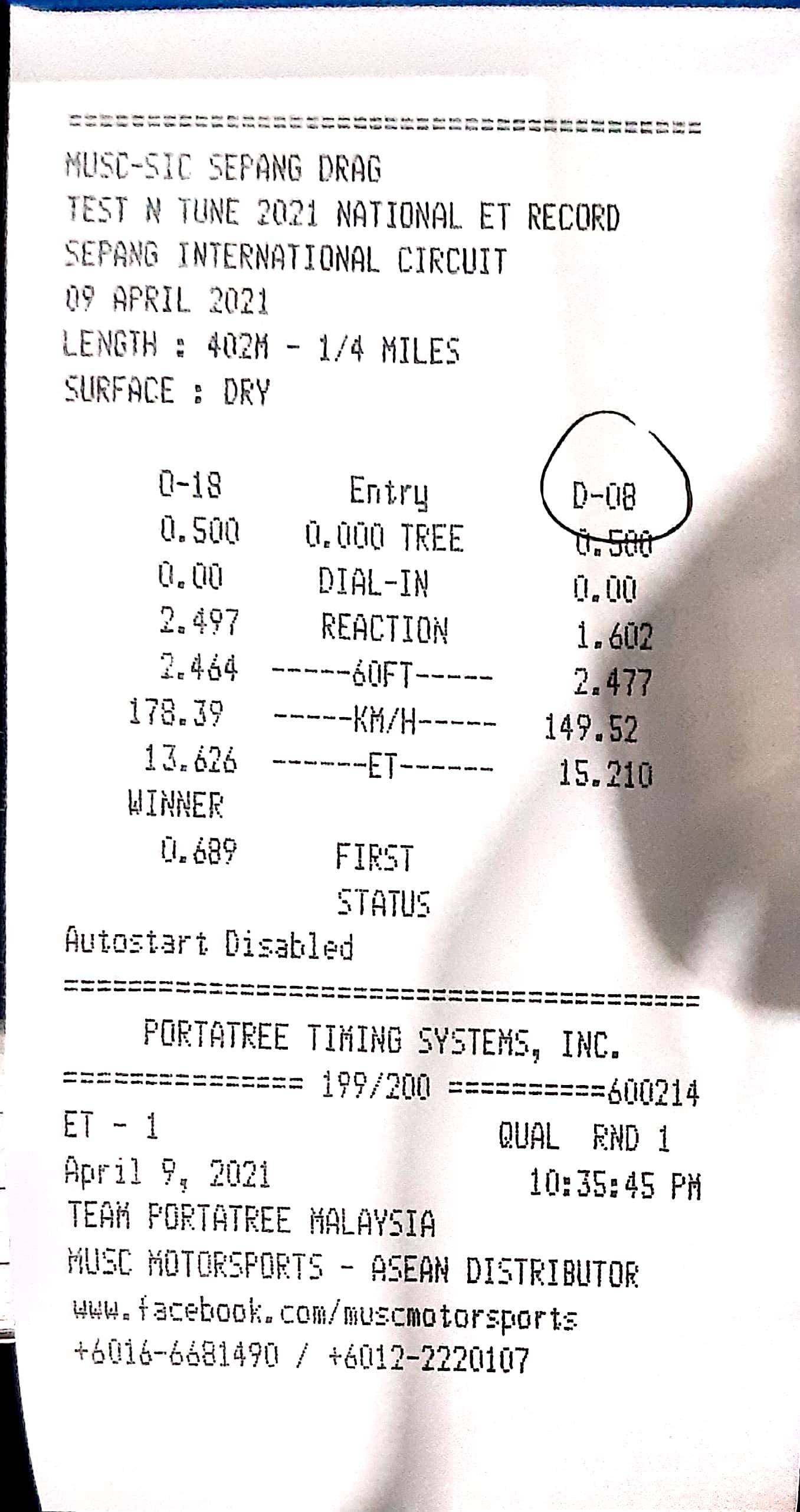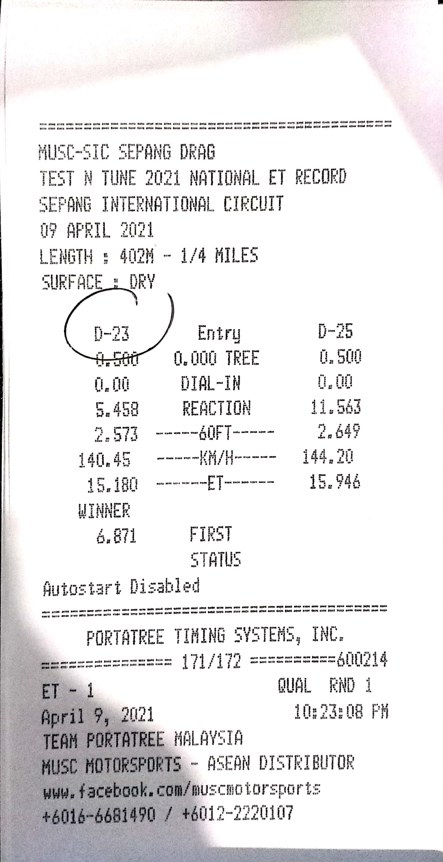 | 16 | D18 | Angah Dragstar | Cmat Along Garage Suzuka Racing Team |